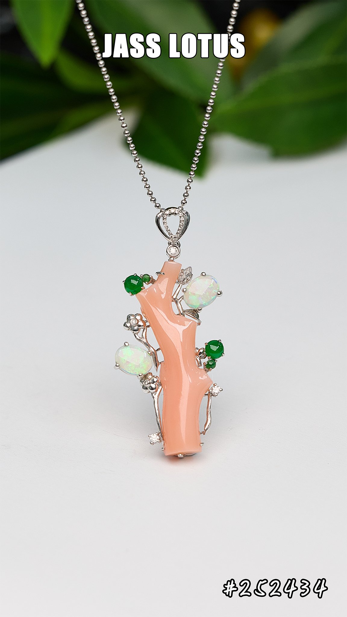 #252434 18K金鑲鑽粉紅珊瑚(山花有樹)吊墜